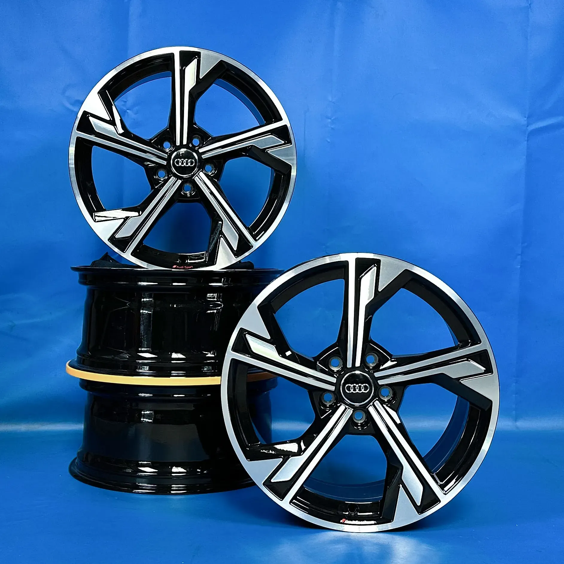 Die Felgen wurden neu in Schwarz pulverbeschichtet und sehen daher Neuwertig aus. Feine Poren und kleine Unebenheiten sind unvermeidbar und können vorliegen. Mit roten "Audi Sport" Schriftzug.