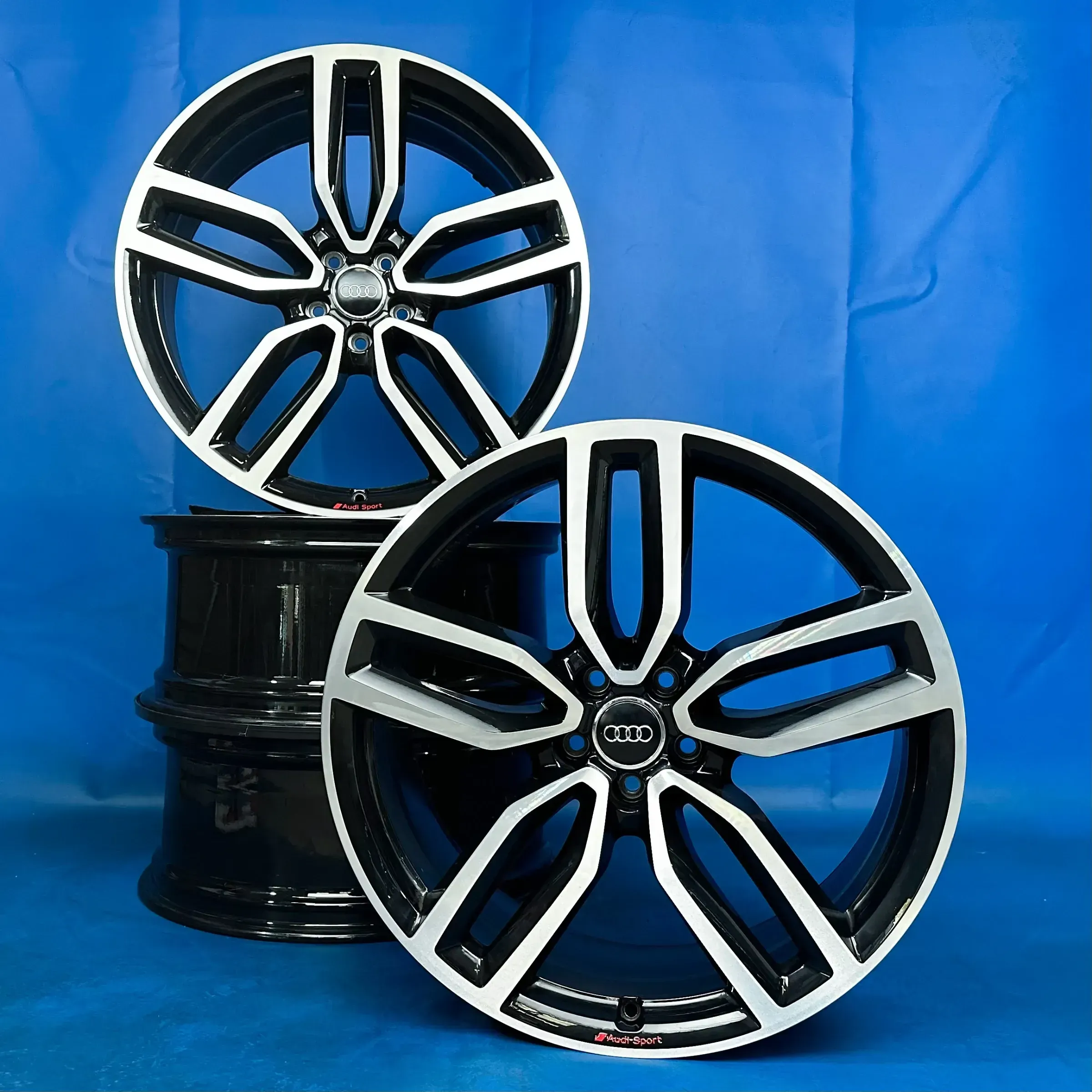 Die Felgen wurden in Schwarz pulverbeschichtet und Glanzgedreht mit dem roten Audi Sport Schriftzug. Feine Poren und kleine Unebenheiten sind unvermeidbar und können vorliegen. Die Felgen wurden danach ca. 2.500 Km gefahren und sind unbeschädigt.